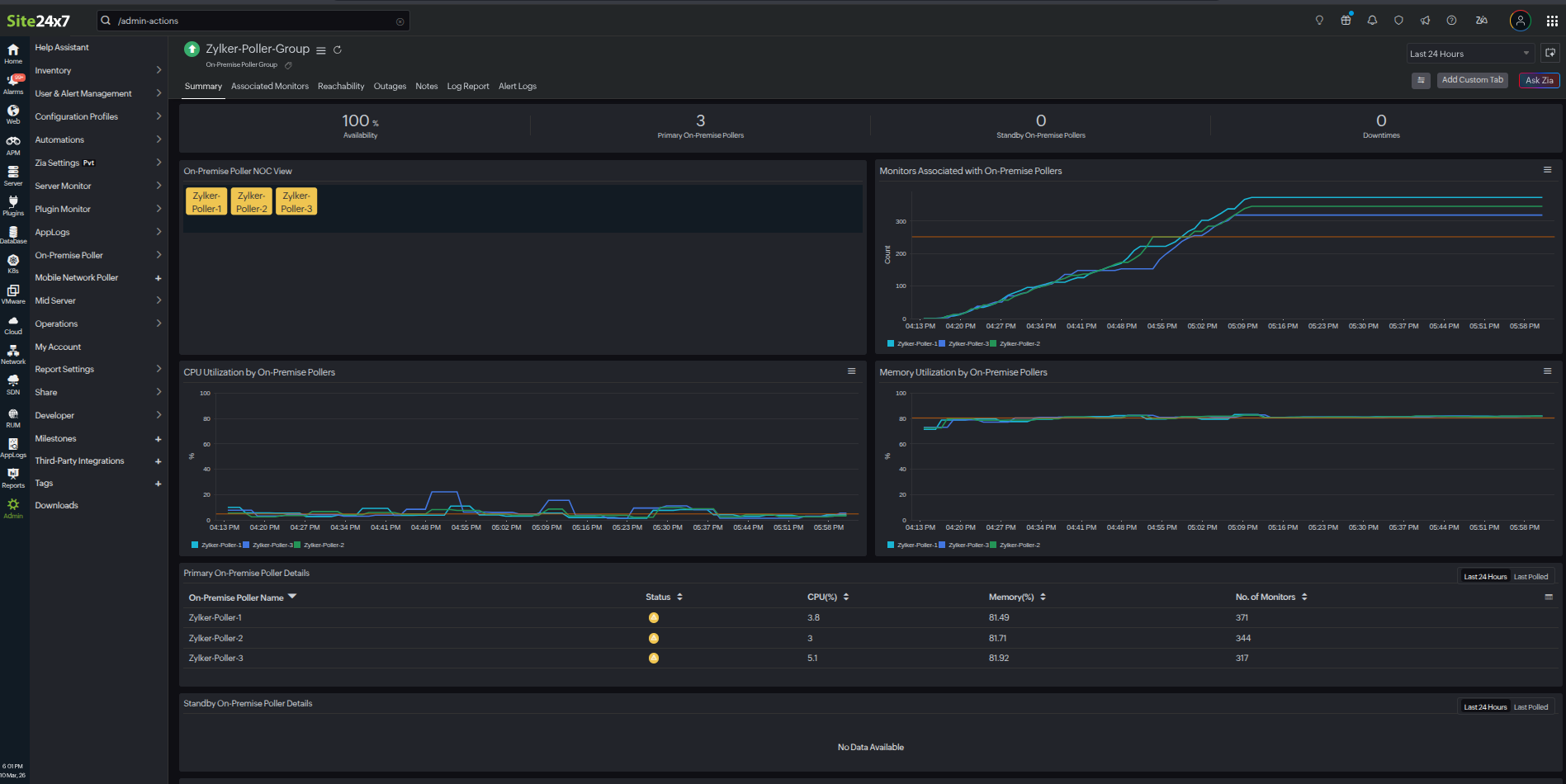 | Primary On-Premise Poller Details | The list of primary On-Premise Pollers with their Status, CPU (%), Memory (%), and number of monitors |