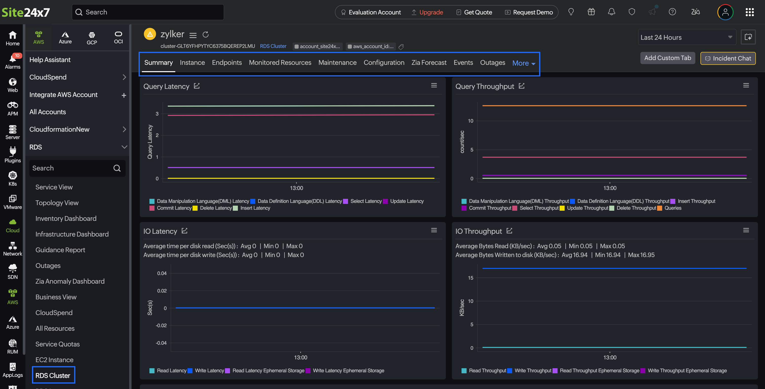 You can view your RDS Cluster monitor data on the following tabs: