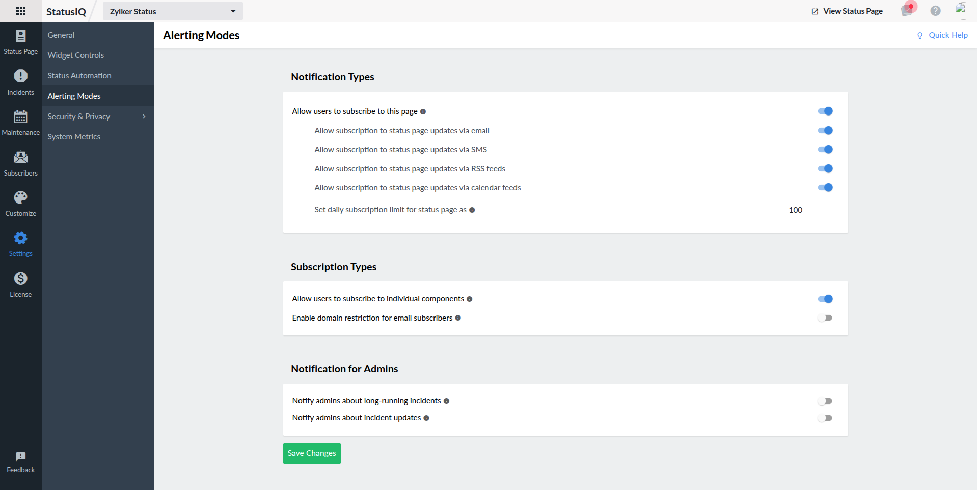 Status Page Settings